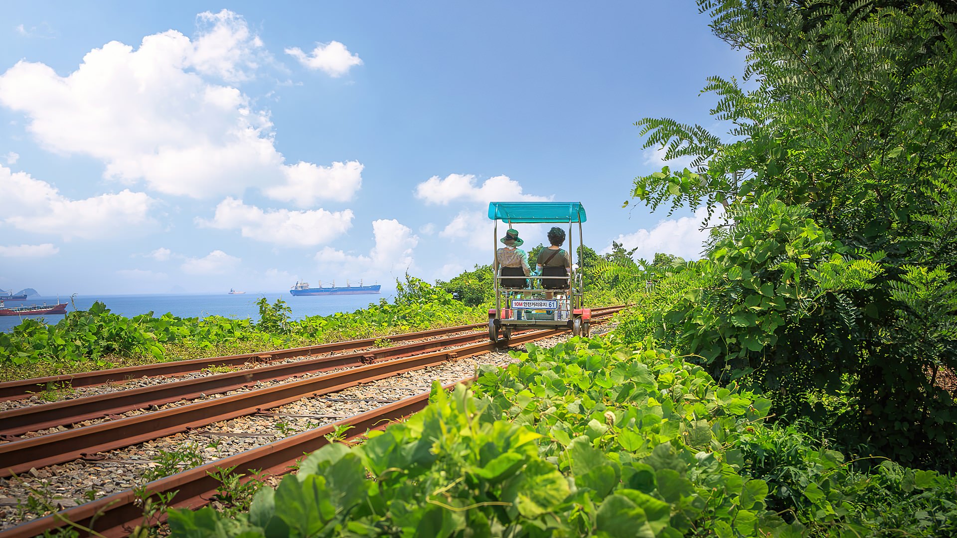 여수해양레일바이크는 부드러운 곡선의 세련된 디자인으로 안정성과 편안함까지 고려하여 제작되었습니다. 왕복 3.5KM에 이르는 탁 트인 해안 철길 위에 설치되었으며, 터널 구간 및 전 구간 해안가 코스로 이용객들의 눈까지 즐거운 체험 프로그램입니다. 여수해양레일바이크는 전 구간 해안을 따라 달리기 때문에 탁 트인 바다를 조망할 수 있습니다. 오동도와 남해가 손에 잡힐듯하고 해가 지면 바다 위에 점점이 흩어진 외항선 불빛이 밤바다의 낭만을 더해줍니다. 국내 최초로 전 구간이 해변을 따라 운행하며 마래 터널 코스에는 LED 조명의 환상적인 경험을 할 수 있습니다.